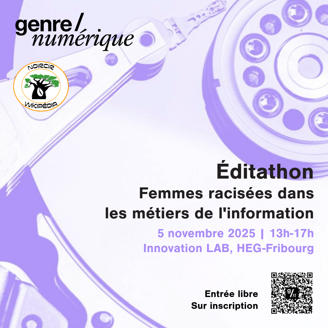 Dans le cadre de la quatrième édition des Assises genre/numérique, nous collaborons avec Noircir Wikipédia pour vous proposer un éditathon sur les femmes racisées dans les métiers de l’information. Cet atelier aura lieu la veille des Assises, le mercredi 5 novembre de 13h à 17h à l’Innovation LAB de la HEG-Fribourg.